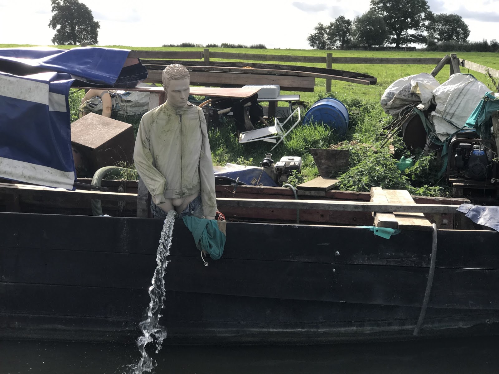 | Just before reaching Cropredy I decided to take a picture of a dummy on a moored boat but I was not prepared for what happened when we went past.. |